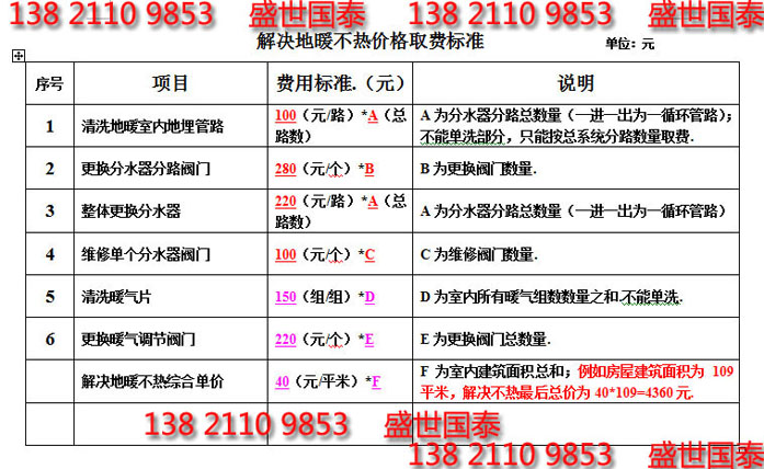 为方便广大天津市民地暖不热问题的解决,同时体现本公司的责任感,天津地暖清洗公司公布解决地暖不热价格